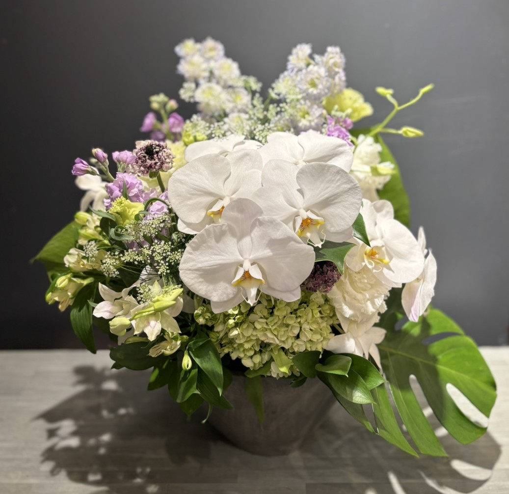 豪華にお祝いしたい方にピッタリの規格です!満開の際には蘭がぎゅっとつまって見えるのでとても綺麗です。