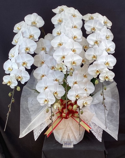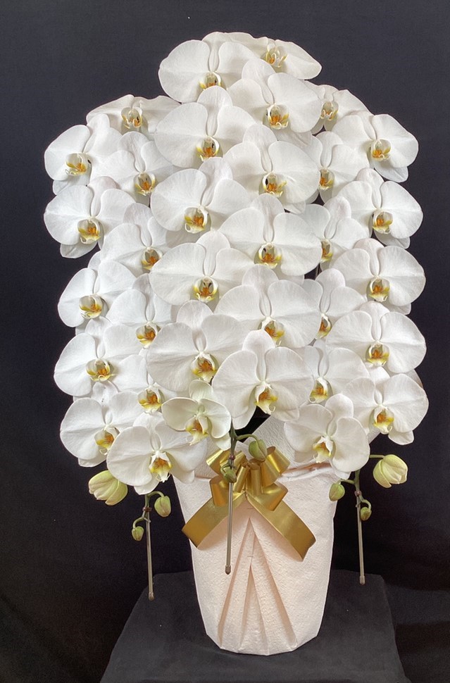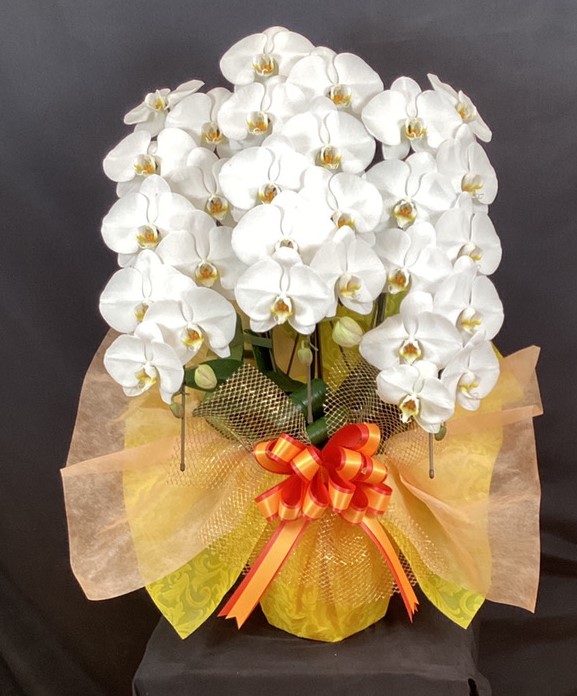 豪華にお祝いしたい方にピッタリの規格です!満開の際には蘭がぎゅっとつまって見えるのでとても綺麗です。